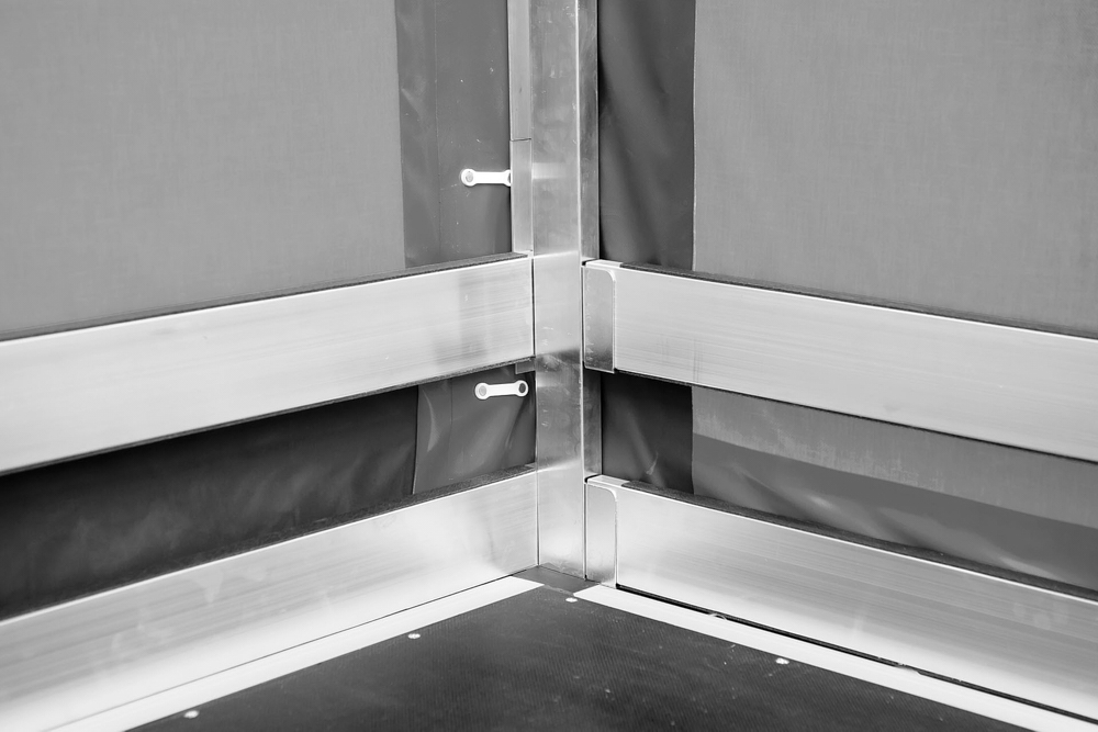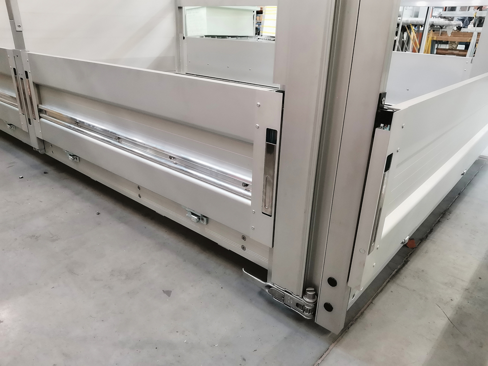 • Ridelles latérales, aluminium, anodisées à hauteur de 400mm avec verrous verticaux